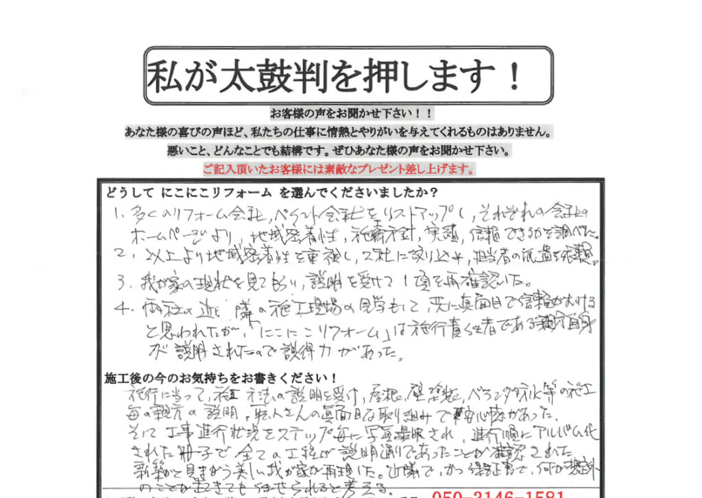 Q. どうしてにこにこリフォームを選んでくださいましたか?