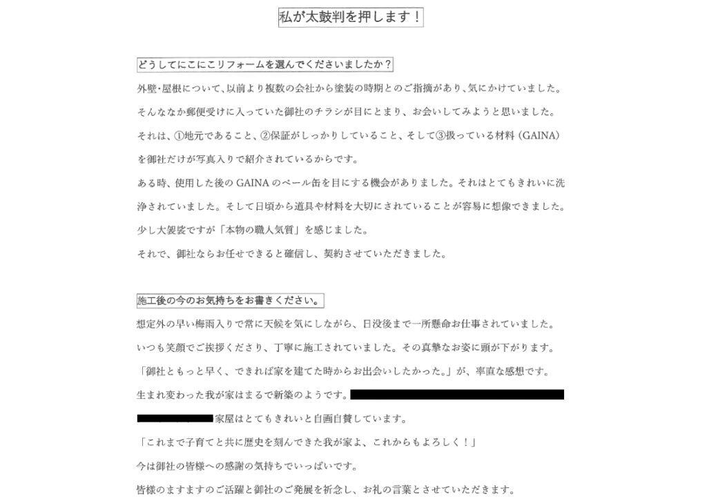 Q. どうしてにこにこリフォームを選んでくださいましたか?