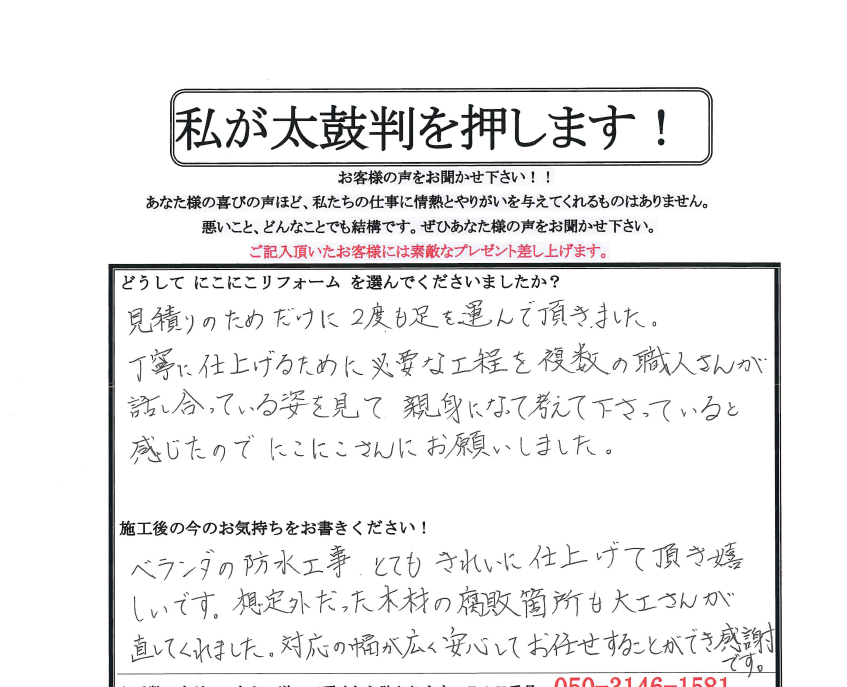 Q. どうしてにこにこリフォームを選んでくださいましたか?