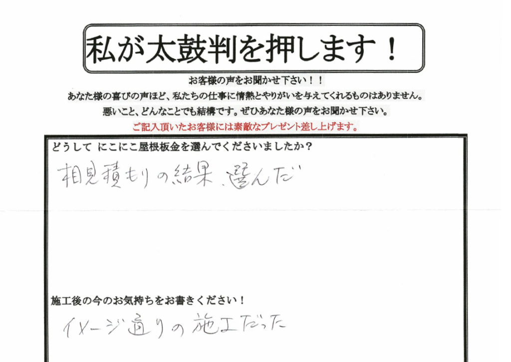 相見積もりの結果にこにこさんを選びました。イメージ通りの施工!