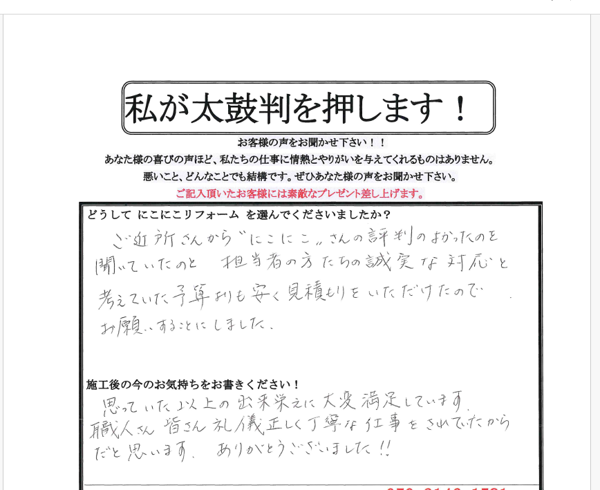 Q. どうしてにこにこリフォームを選んでくださいましたか?