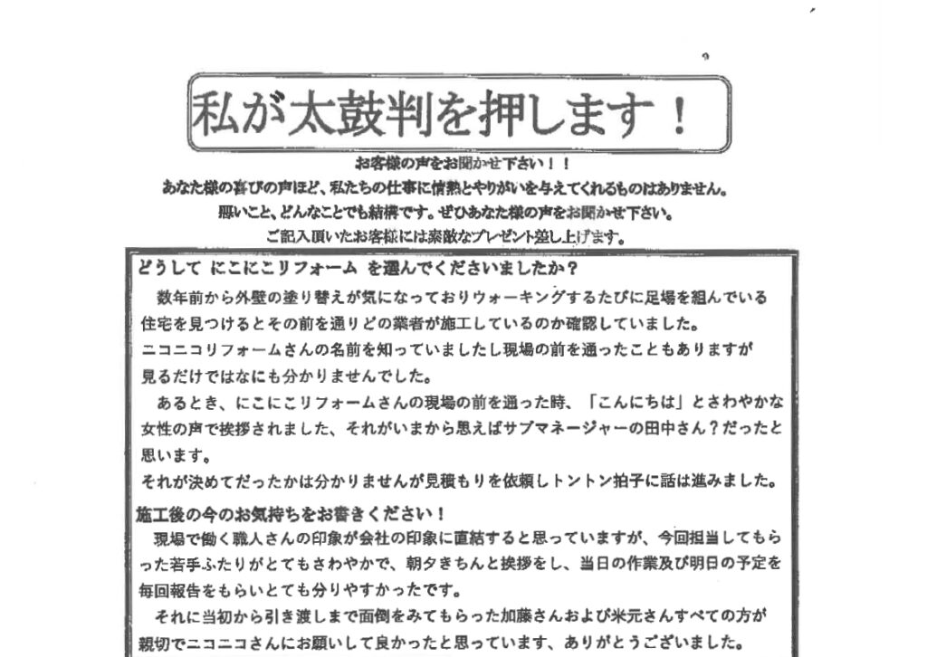 Q. どうしてにこにこリフォームを選んでくださいましたか?