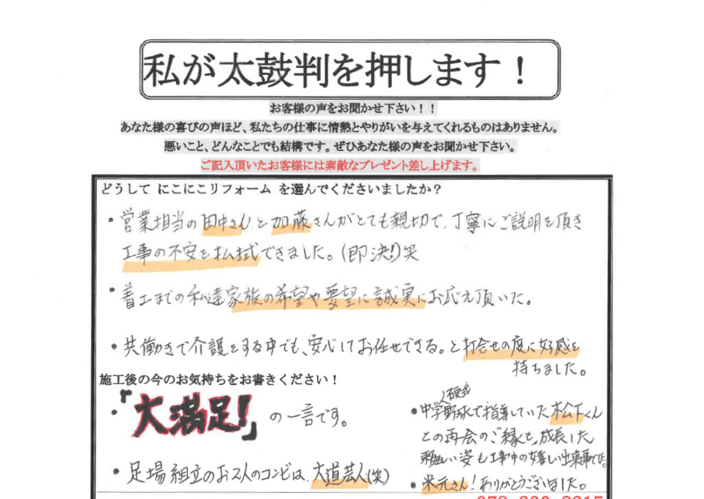 Q. どうしてにこにこリフォームを選んでくださいましたか?