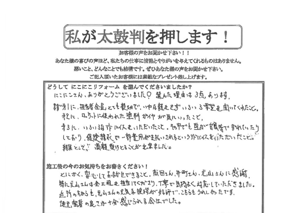 Q. どうしてにこにこリフォームを選んでくださいましたか?