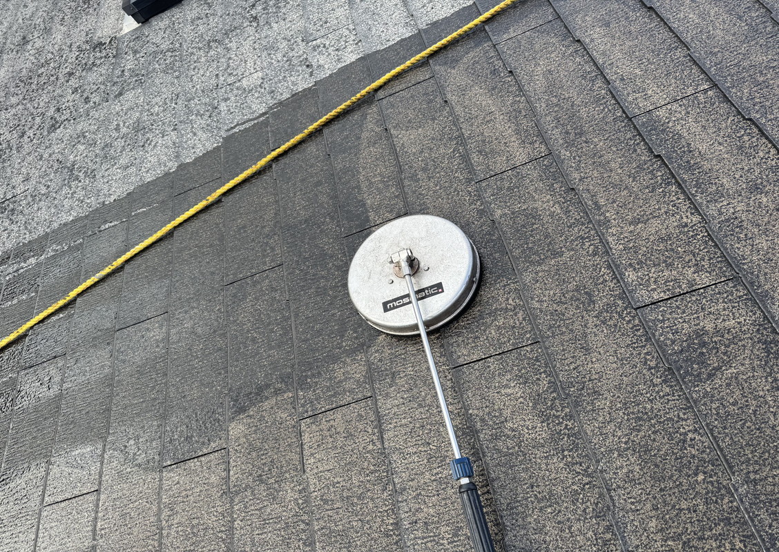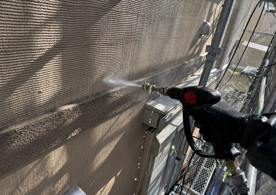 塗装の前に高圧洗浄で、コケや汚れ、黒ずみ、旧塗膜等をしっかり落としていきます!高圧洗浄でしっかりと旧塗膜や汚れを落としておくことで、塗料の密着性を良くする効果を発揮できるからです。