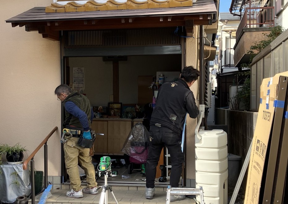 本日は伊丹市北河原にお住いのN様のお宅にて 玄関の引戸交換工事を行いました。
