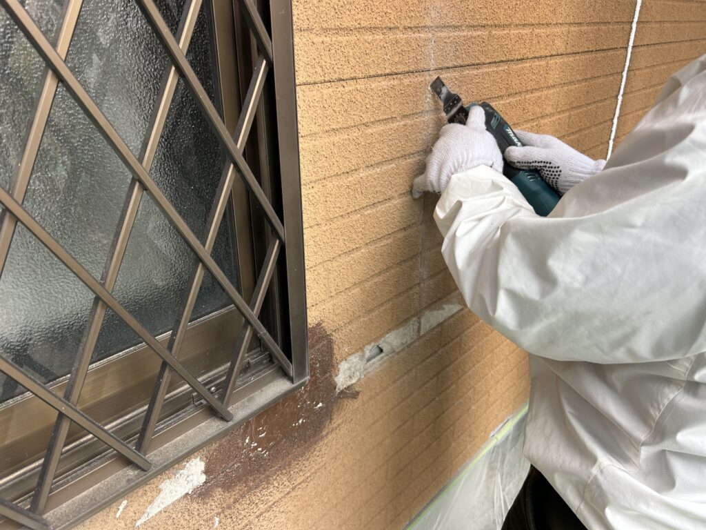 ↓外壁サイディングに付着した、シーリングカスなども綺麗にします。思った以上に中は綺麗でした♪