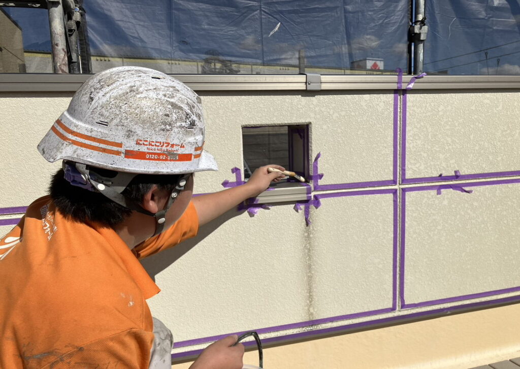 現場親方ブログ2025.10.15宝塚市 S様 シーリング工事中シーリング工事こんにちは!にこにこシーリング班です本日は宝塚市にお住いのS様のお宅にてシーリング工事を行っております。一つ一つの工程をしっかりと行っております。