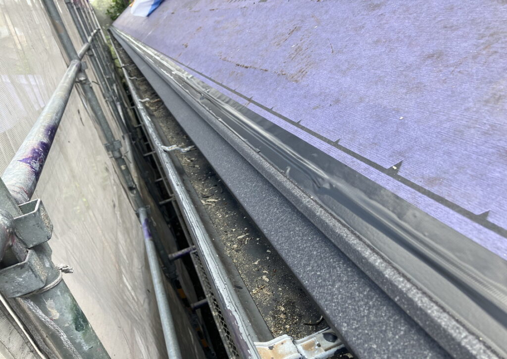 縦ラインの先端部分から雨水が入ってこないようにする為の物です。唐草同様ルーフィングに隙間が入らないように取付します。