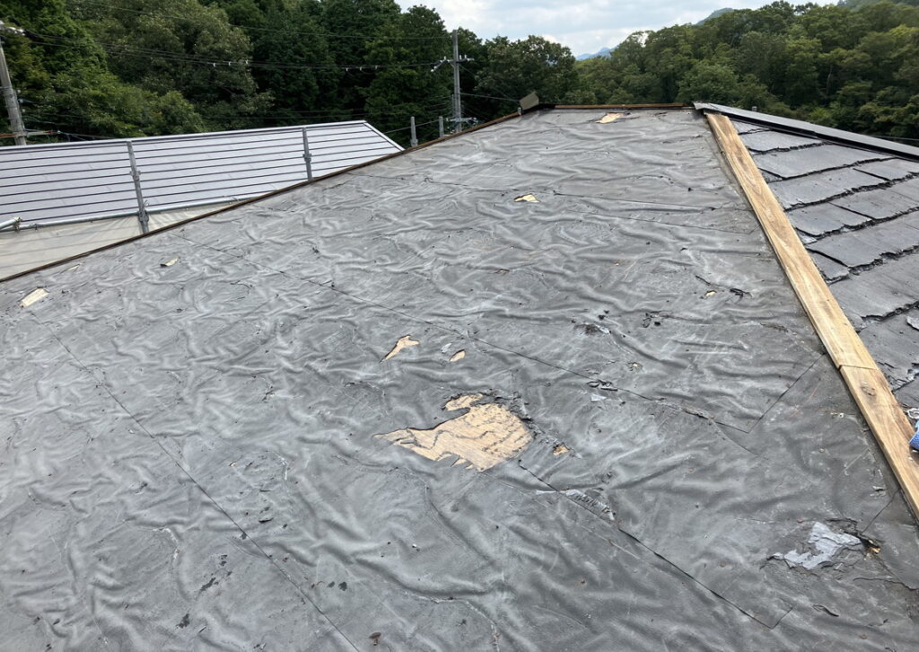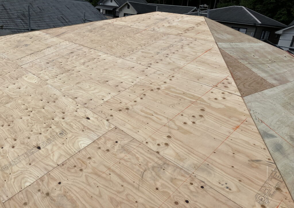 古い野地板を撤去し新しい野地板(コンパネ)を隙間なく貼り付けます。