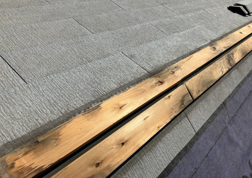 既存の棟板金を撤去することで、のちのちの耐久性に大きく関わってきます。撤去の際は、屋根の下地を傷つけないよう留められている釘を丁寧に撤去します。