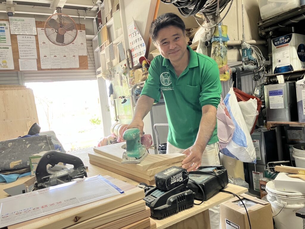 | にこにこリフォームに入社したきっかけ | 高田社長と長石会長とは幼馴染で、彼らが経営するにこにこリフォーム(株)の理念に共感し、共に職人技術者として自分の培った技術で地域で貢献したいと思いにこにこリフォーム事業に参画する事を決めました。 |