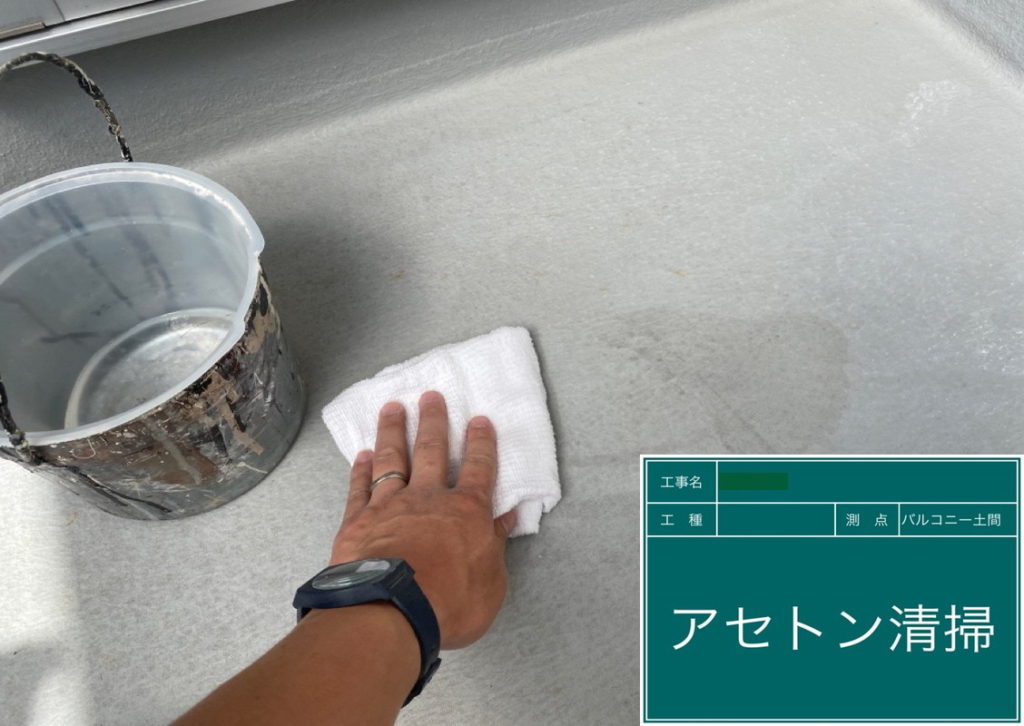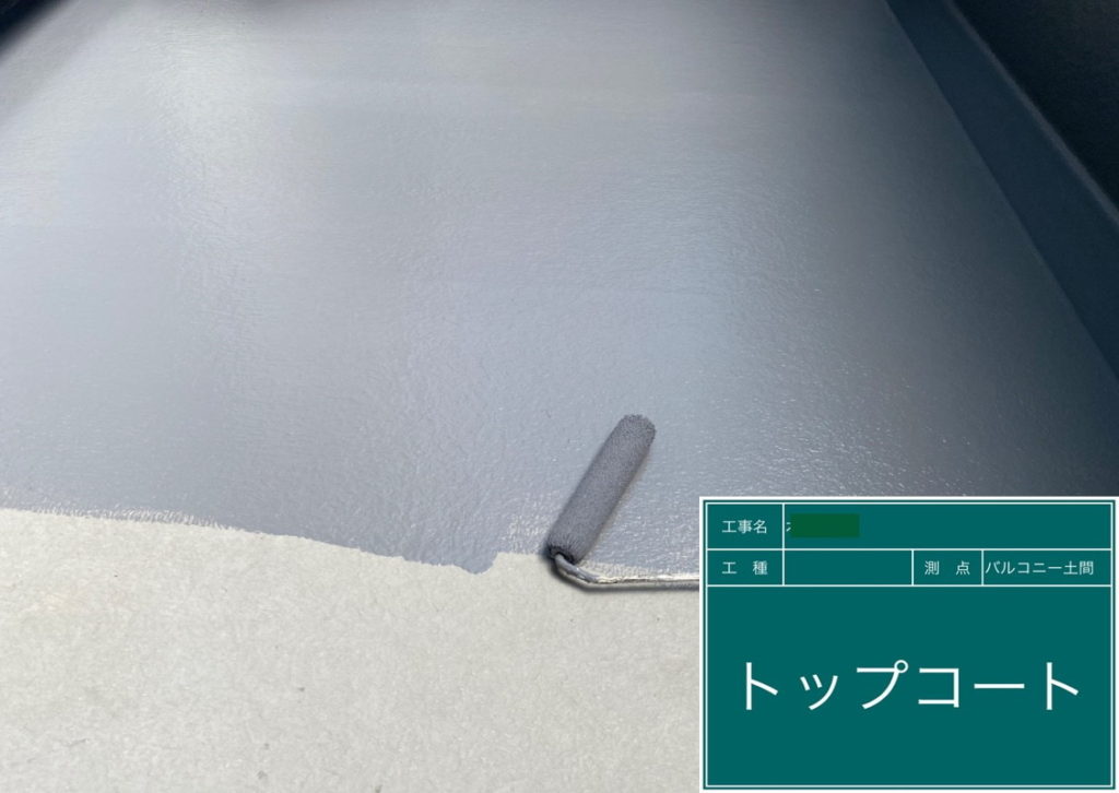 ベランダ防水上塗りの様子