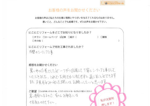 口コミ評判三田市O様お客様の口コミ紹介! カスタマーレビュー ★★★★★ Q. どうしてにこにこリフォームを選んでくださいましたか? 2年程前のチラシで気になっておりました。親方の説明が分かりやすく、今回外壁以外の防水工事もお願い...