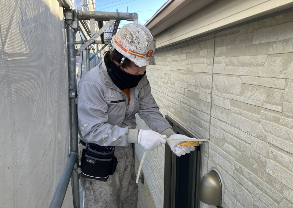 と壁のつなぎ目を目地といいます。シーリングが経年劣化によりひび割れ等がみられる場合は補修します。