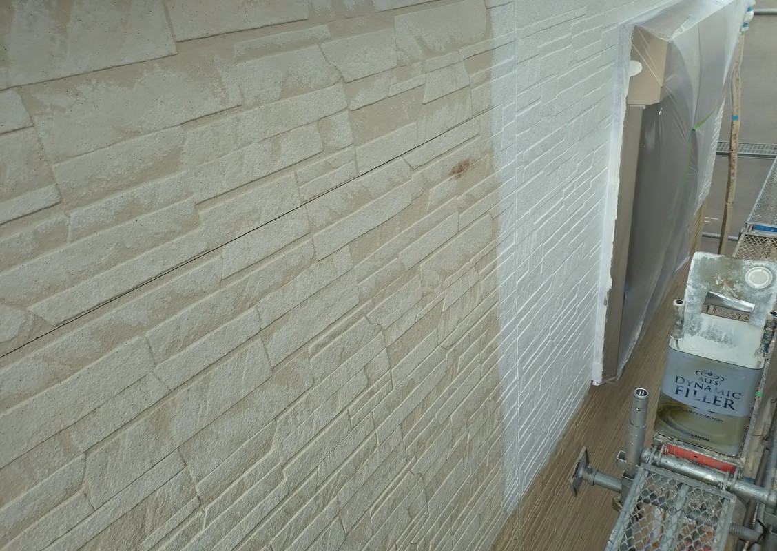 下塗り(したぬり)といいます。外壁の種類により、下塗り塗料はシーラとフィラーと2種類の下塗り塗料に分かれますが、下地材に適した塗料を使用します。
