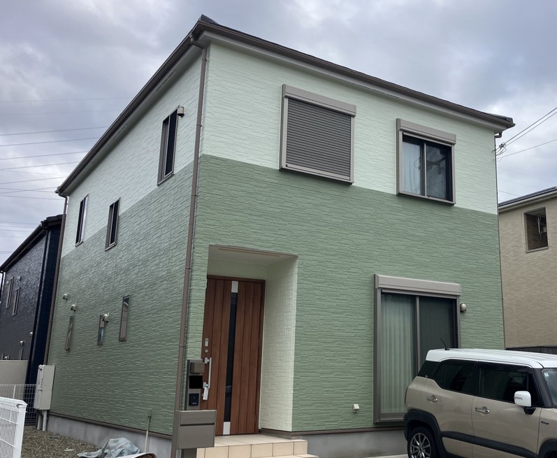 山下 川添施工事例 黄緑色と緑の落ち着いたツートンカラーのお家に大変身