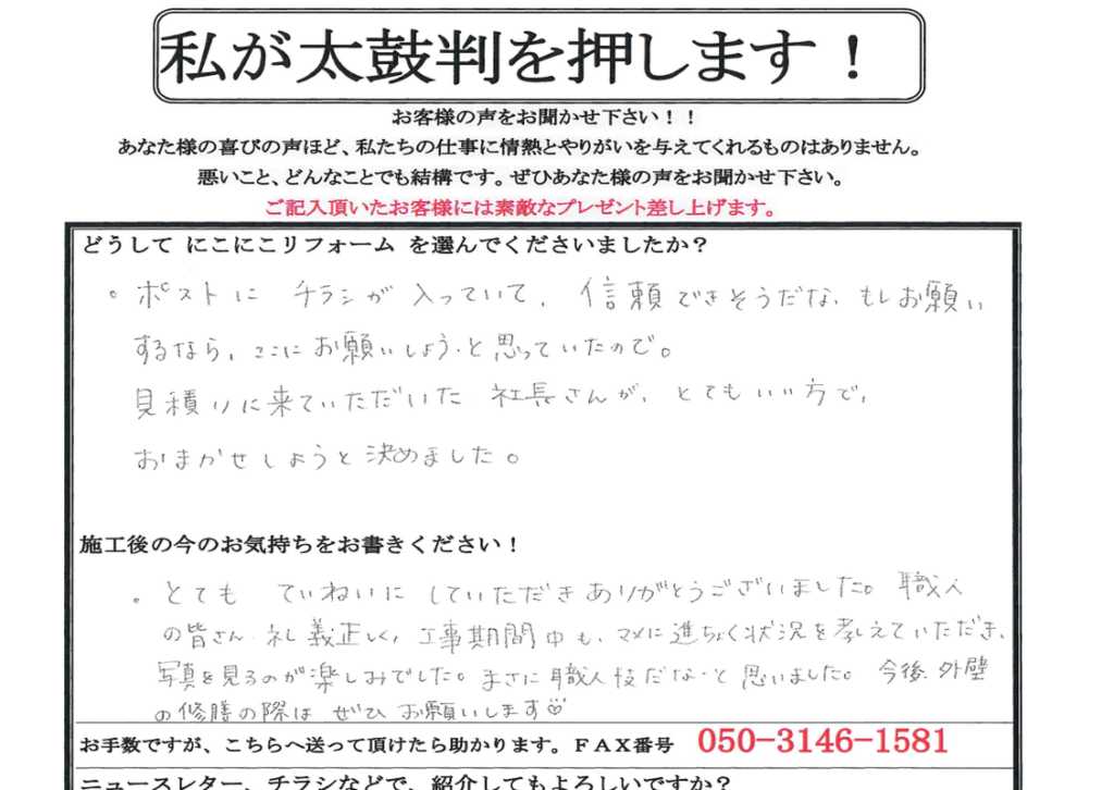 ■どうして、にこにこリフォームを選んでくださいましたか?