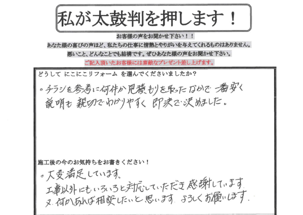 ■どうして、にこにこリフォームを選んでくださいましたか?