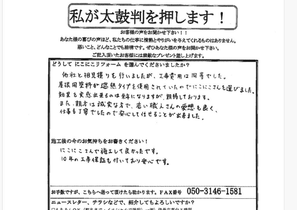 にこにこさんで施工して良かったです。